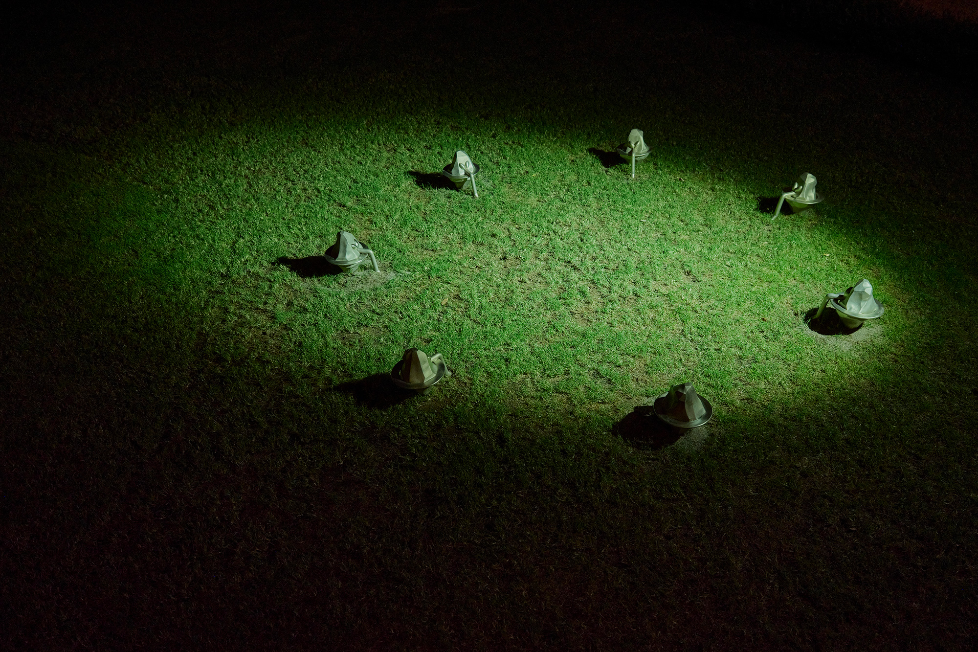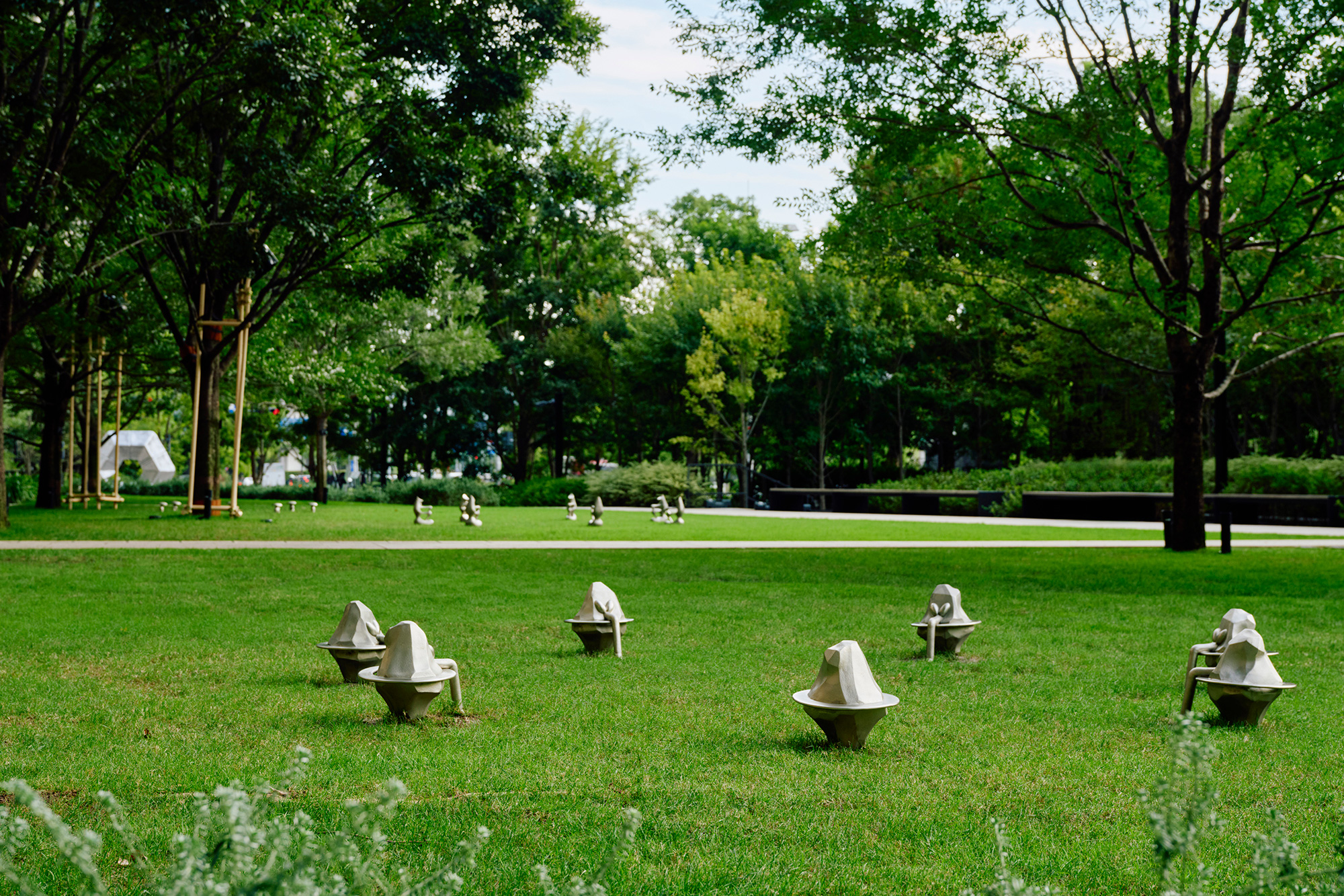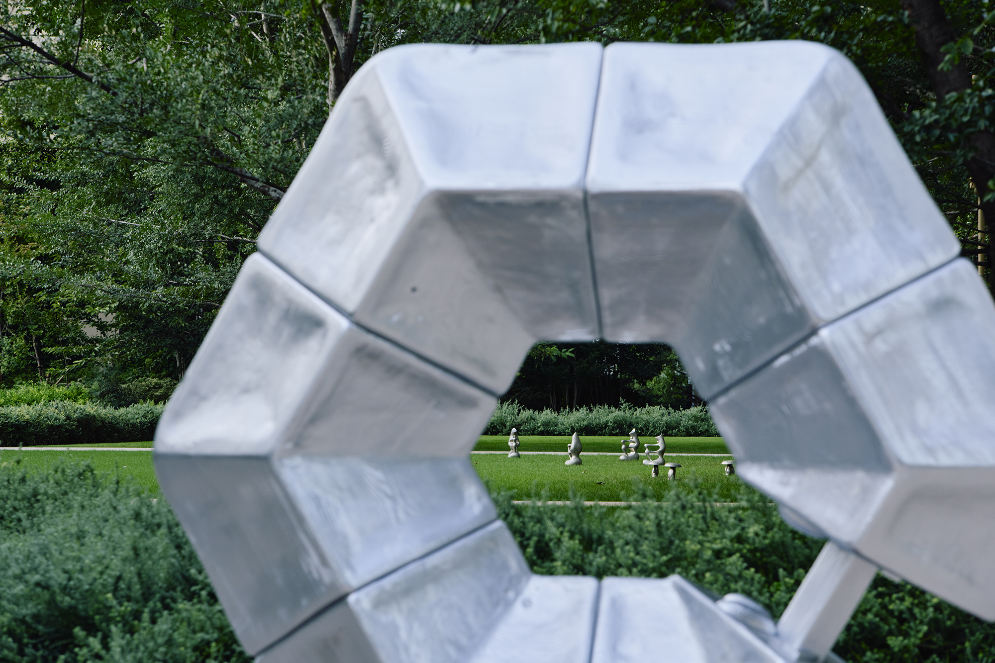 会場となったOtemachi One Gardenの芝生エリアには、銀色に輝く大きな輪状のオブジェと、円を描くように配置された複数の彫刻作品が出現。都市の中心におけるアートと自然、そして人々の新たな関係性を提案するインスタレーションとして注目を集めました。